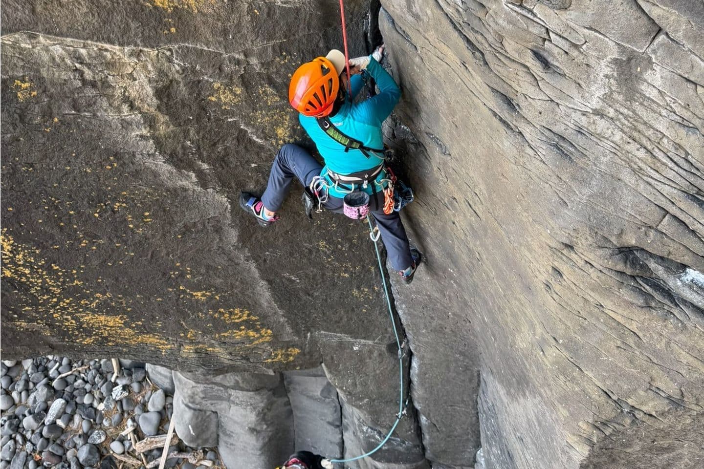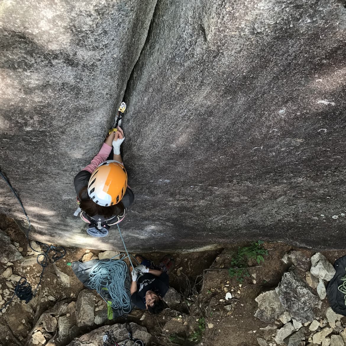 トップロープ状態でカム・ナッツをセットをしながら登り、数多くのセットで経験値をあげてセットに慣れます