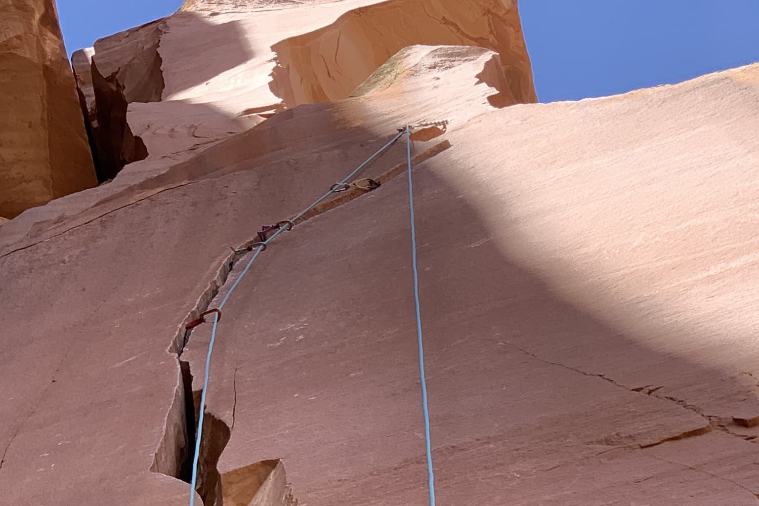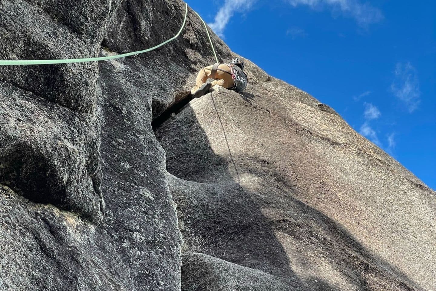 ルート全般に渡ってのプロテクションの戦略、どこでプロテクションを取るかの戦術、また登る技術も馴染みのない自分の手足をねじり込んで登るジャミングと言う技を駆使しなければなりません。