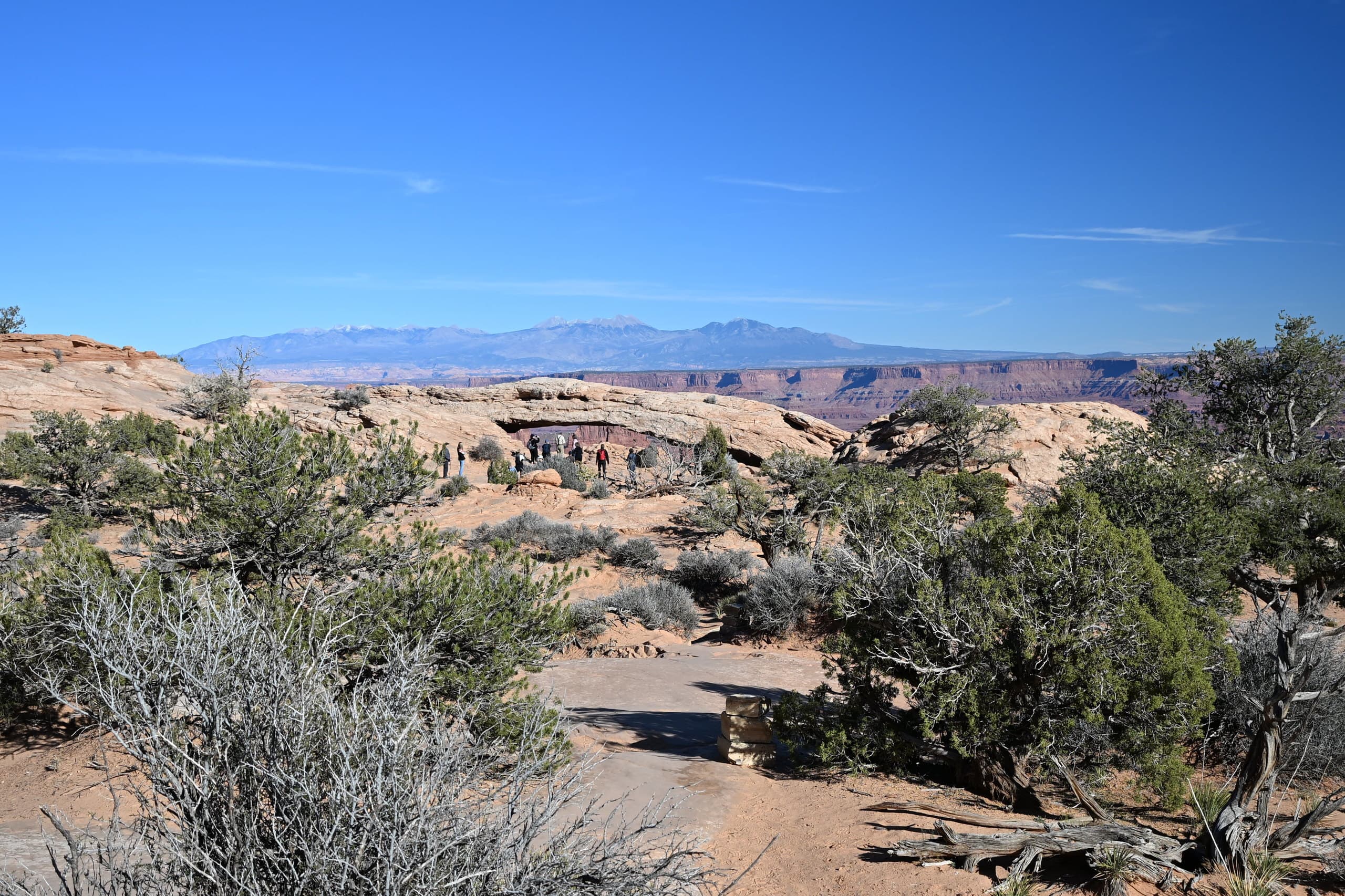 - 東側に開けた展望台で、目の前に広がる峡谷の奥にラ・サル山脈が見えます。遠くにコロラド川も確認できて、ちょっと得した気分になります。