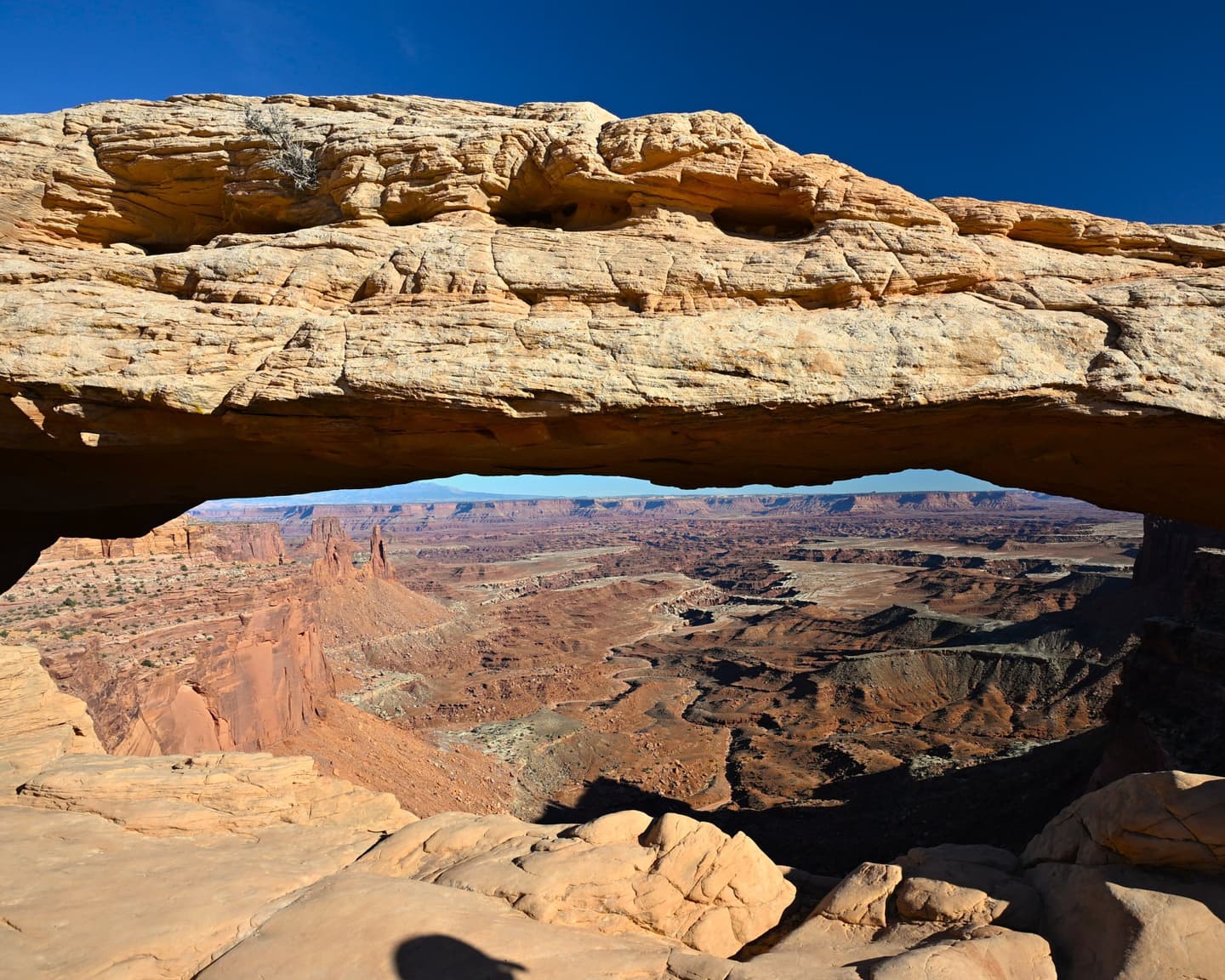 - 崖の縁にかかる小さなアーチで、短いトレイルを歩くだけで辿り着けます。世界的には「朝日の撮影スポット」として有名ですが、朝に行かなくても十分に魅力があります。アーチの向こうに広がる峡谷を覗き込むと、まるで空に浮かぶ窓から大地を見下ろしているような感覚になります。