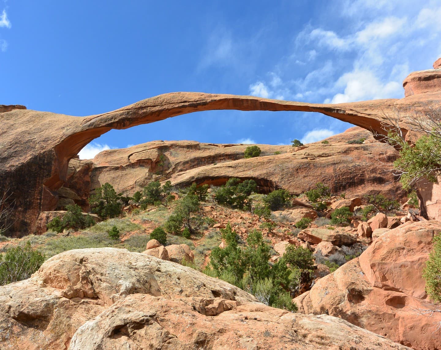 繊細な姿を見せる「Landscape Arch」は世界最長級のアーチで、崩れそうで崩れないその姿に自然の不思議を感じることができます。