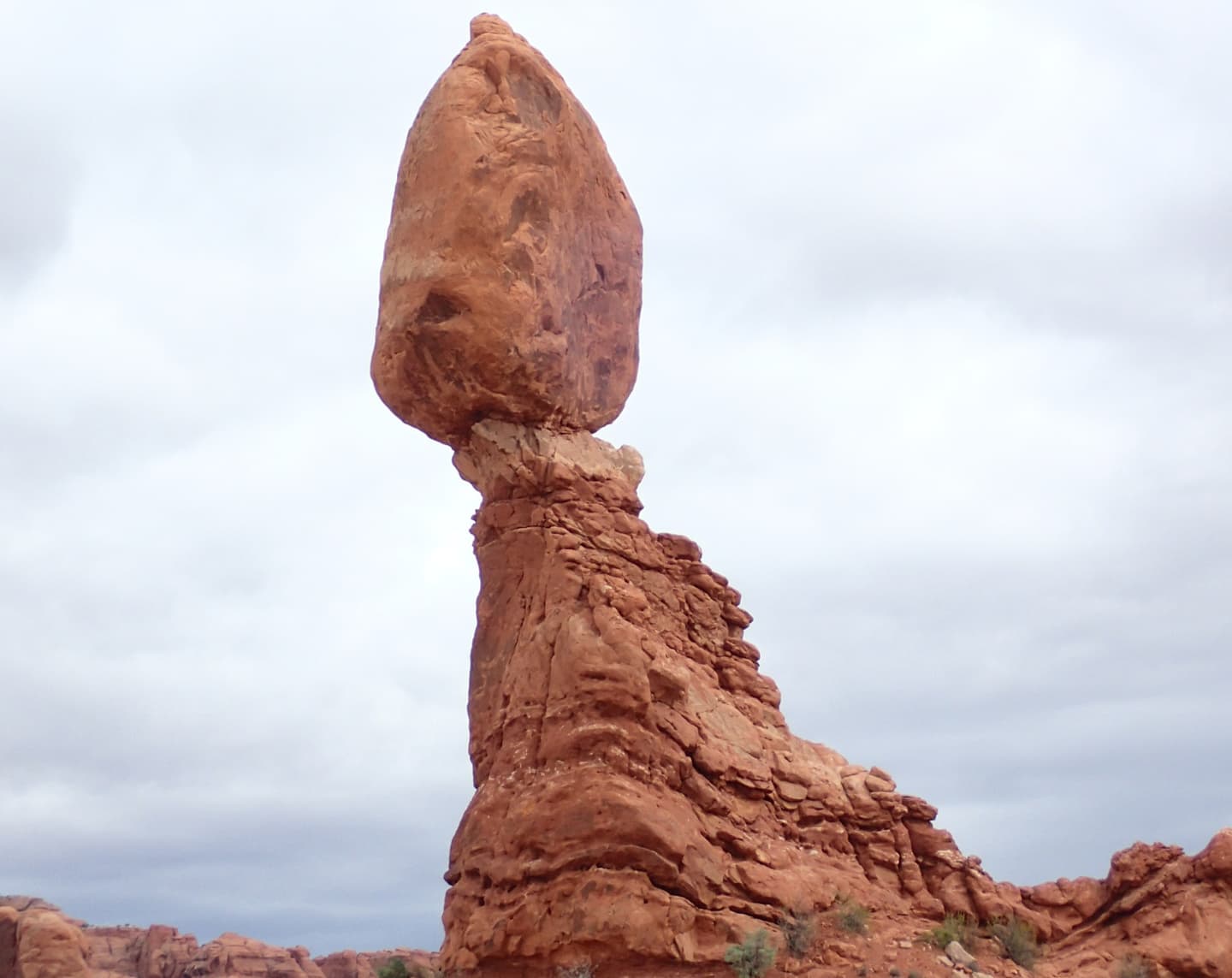 巨大な岩が細い台座に乗る「Balanced Rock」は、思わず立ち止まって見入ってしまうユニークな景観です。