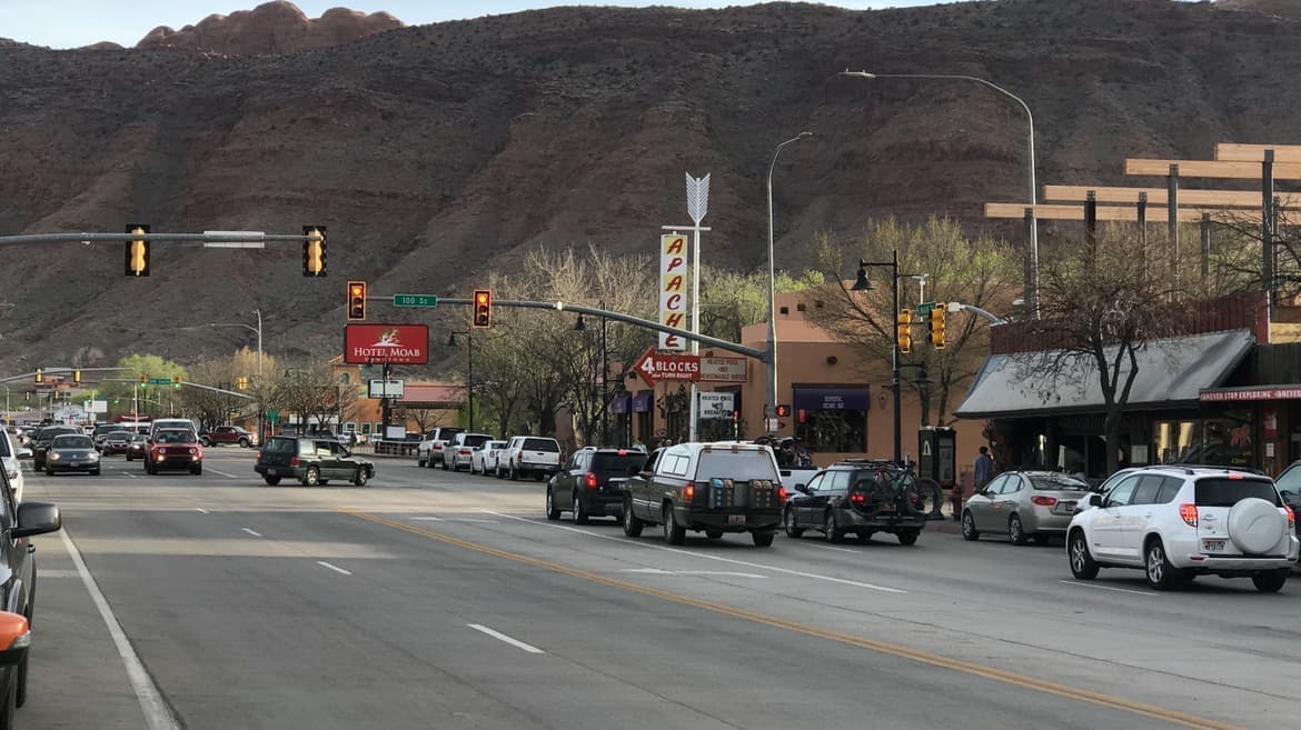 アメリカによくあるモーテル。車の横が部屋ということも可能。Moabの中心地にあるのにとてもリーズナブルな値段。
