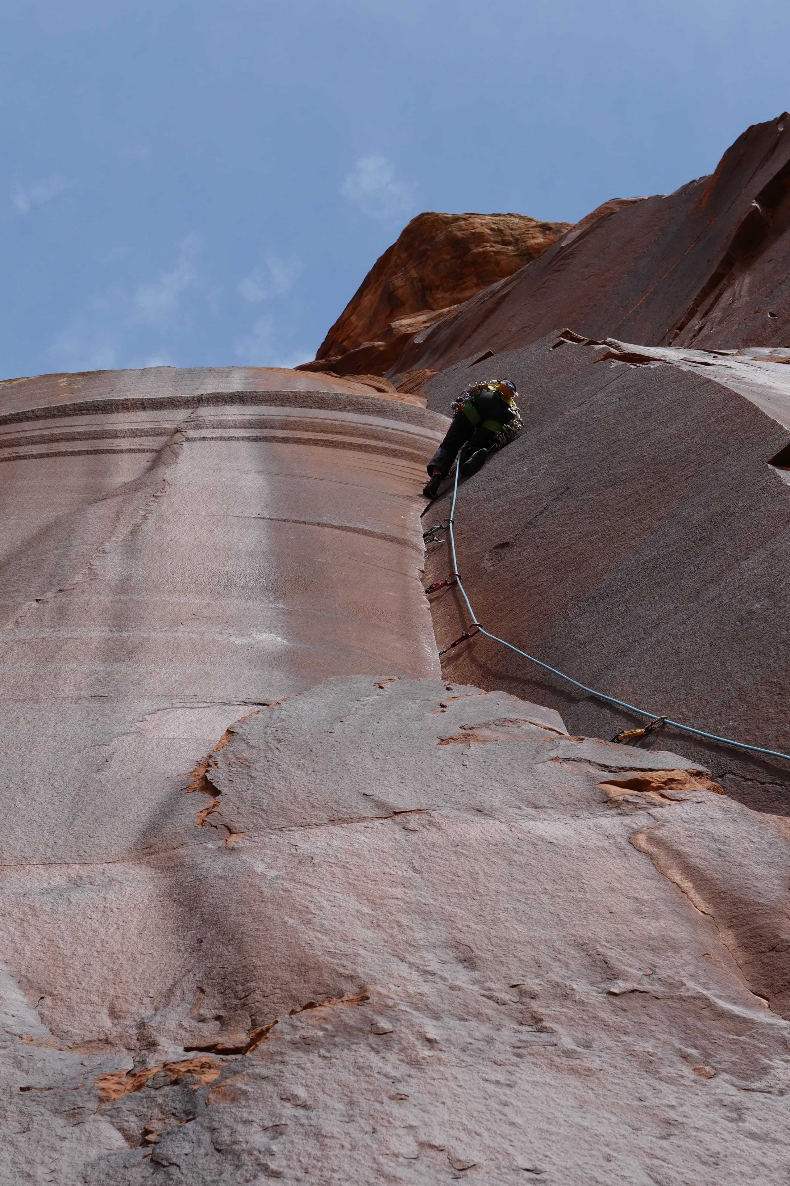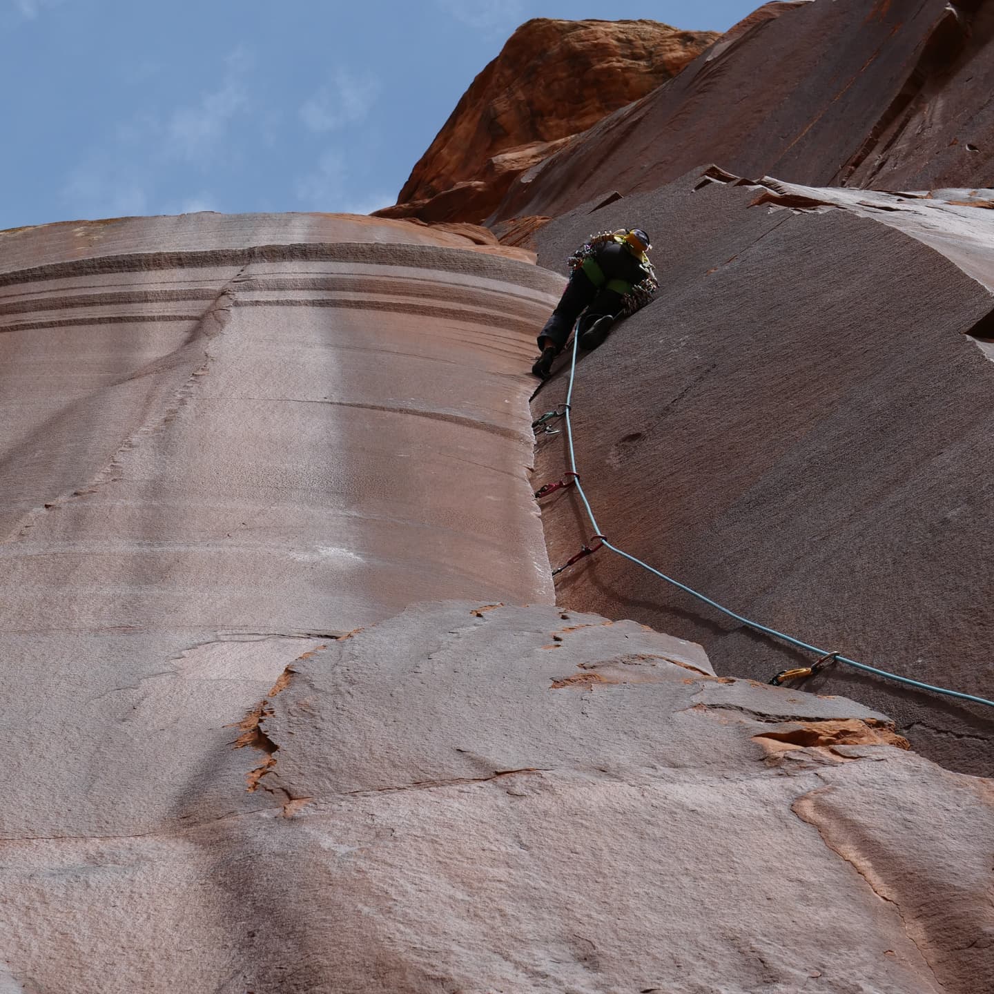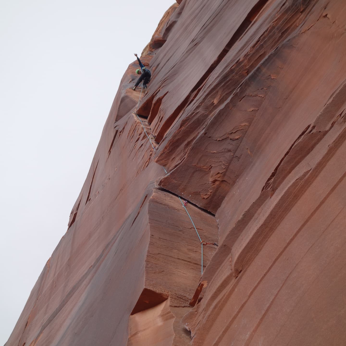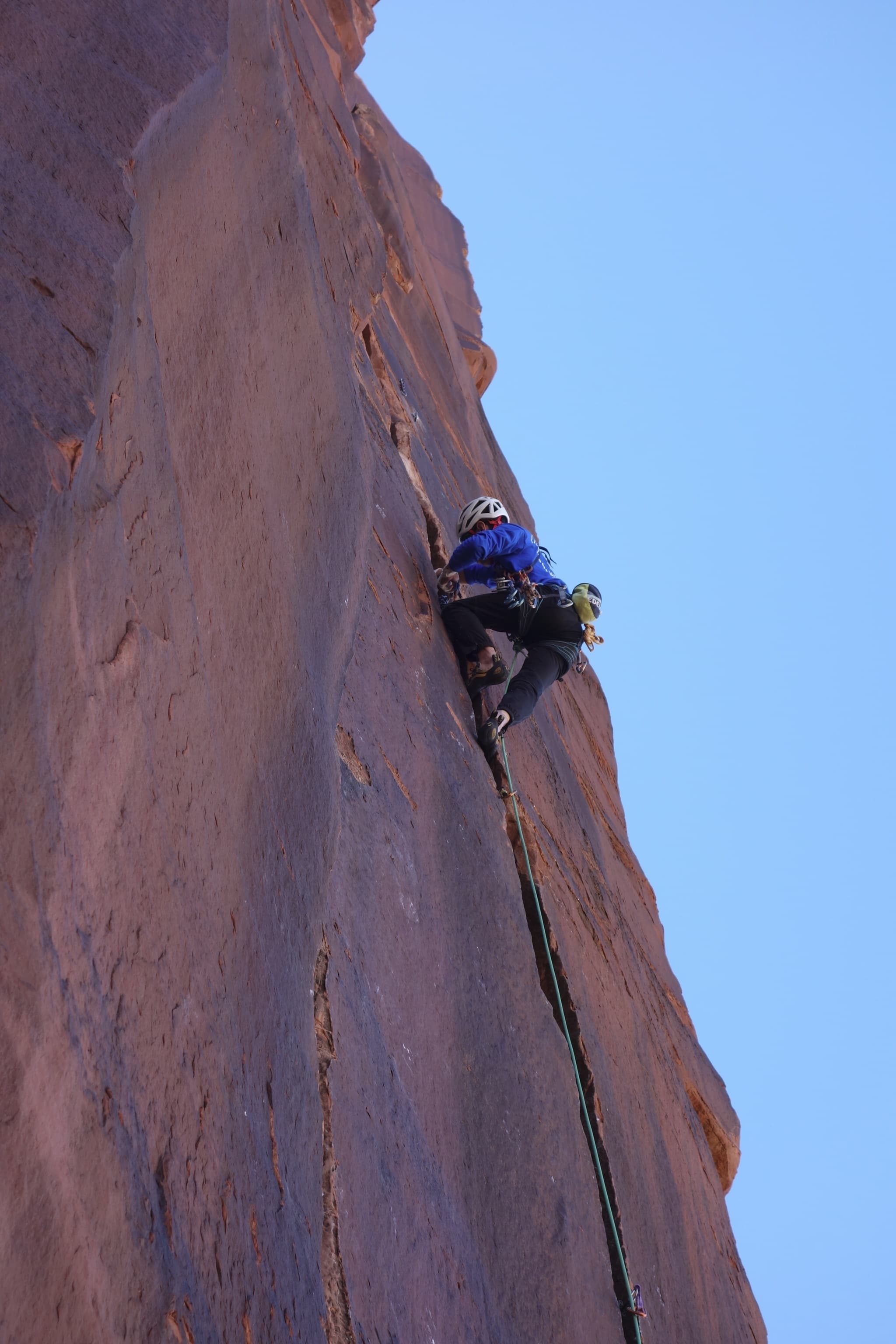 暗いので目が慣れるまでどこ登るの?だが、見えてくるルートは一直線に駆け上がり神秘的。赤キャメサイズなので手の厚い人には修行(私、該当)