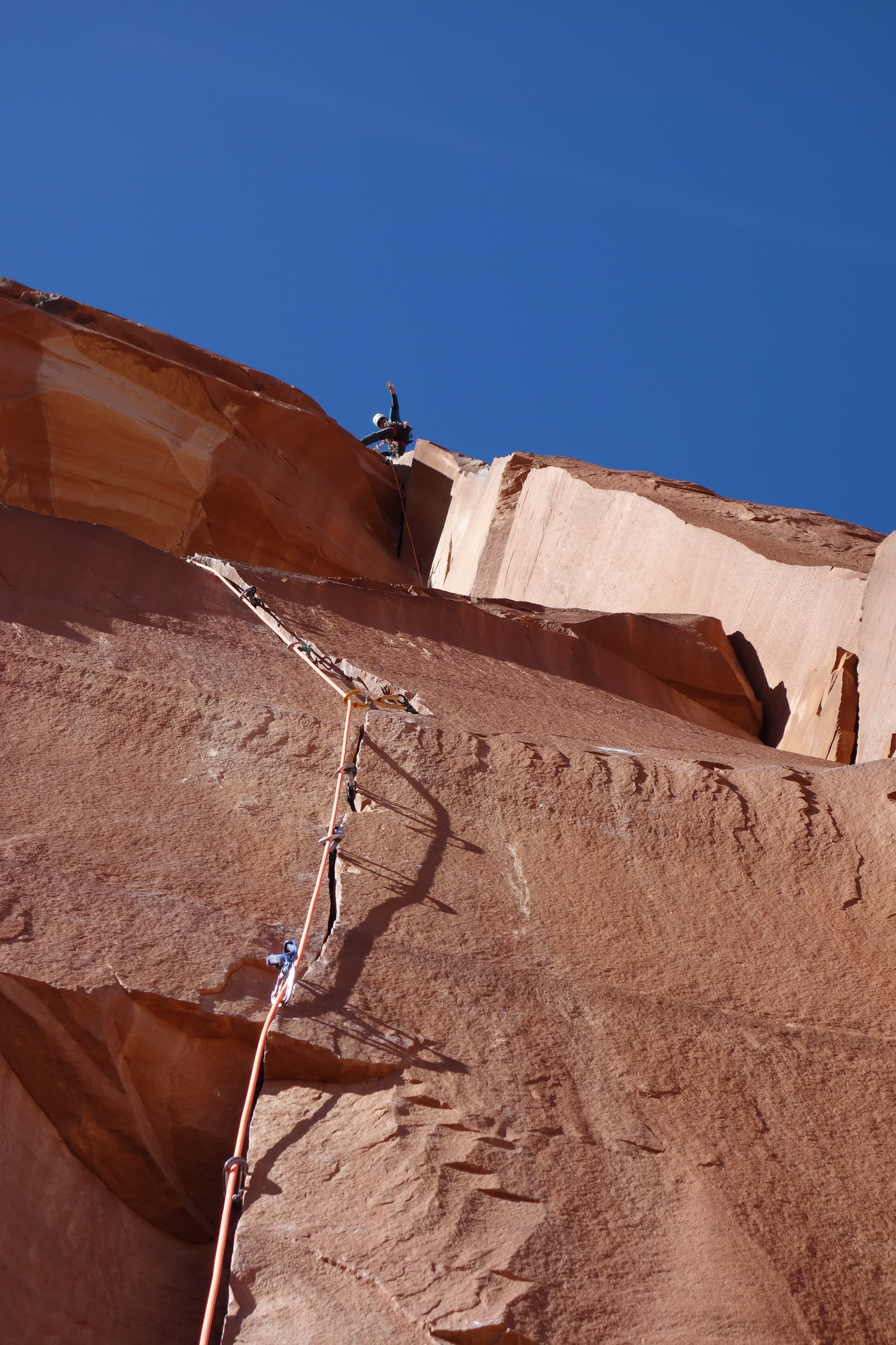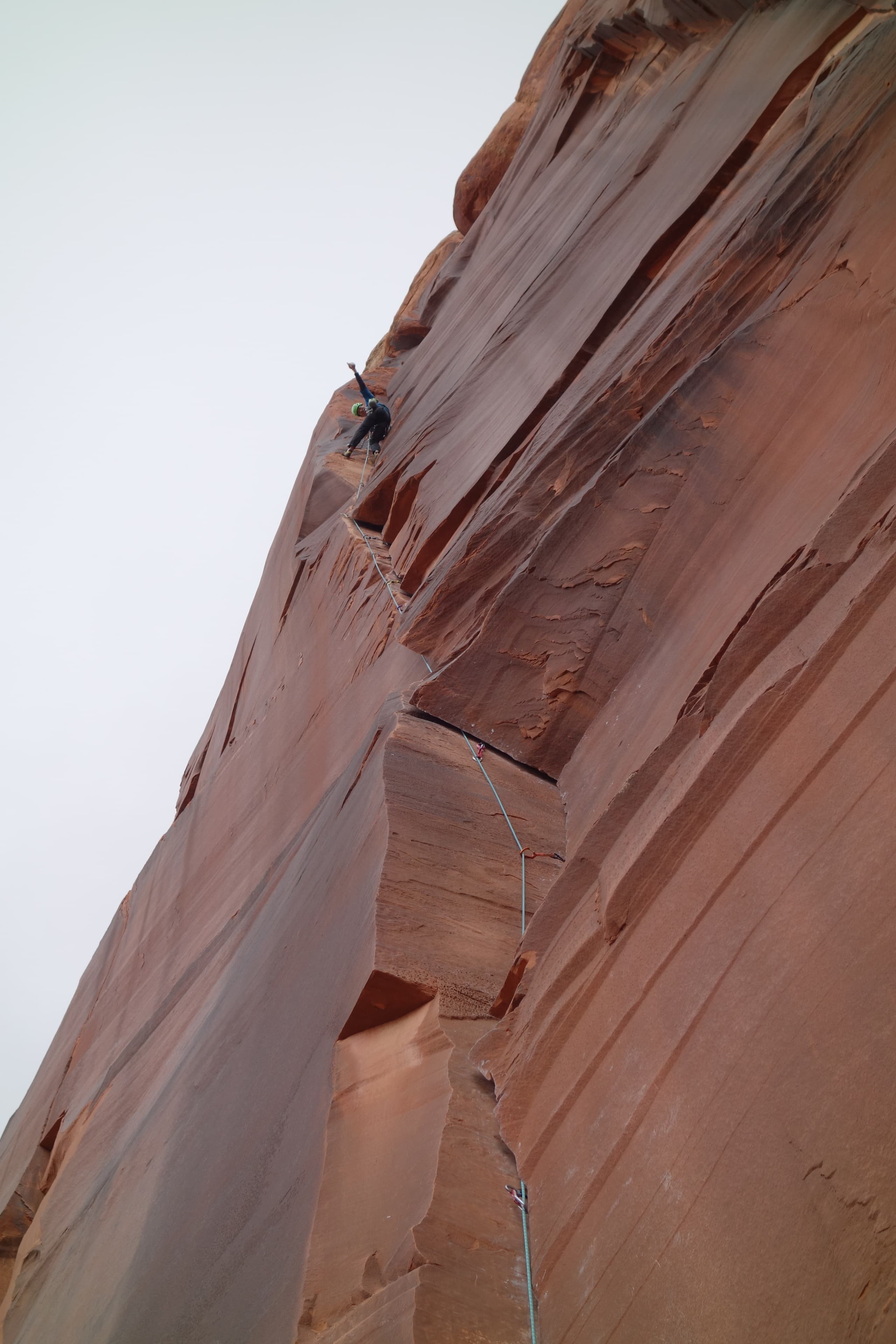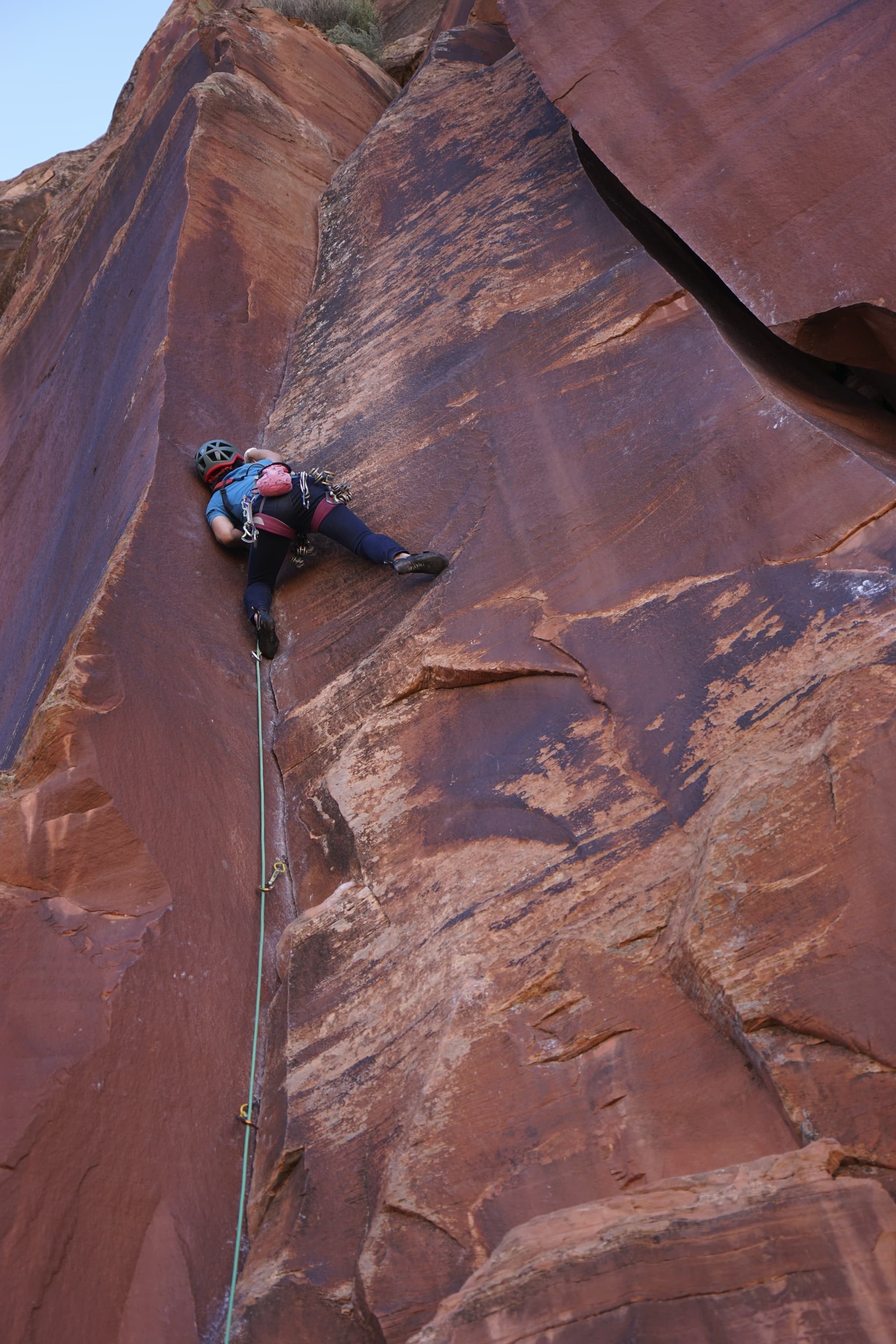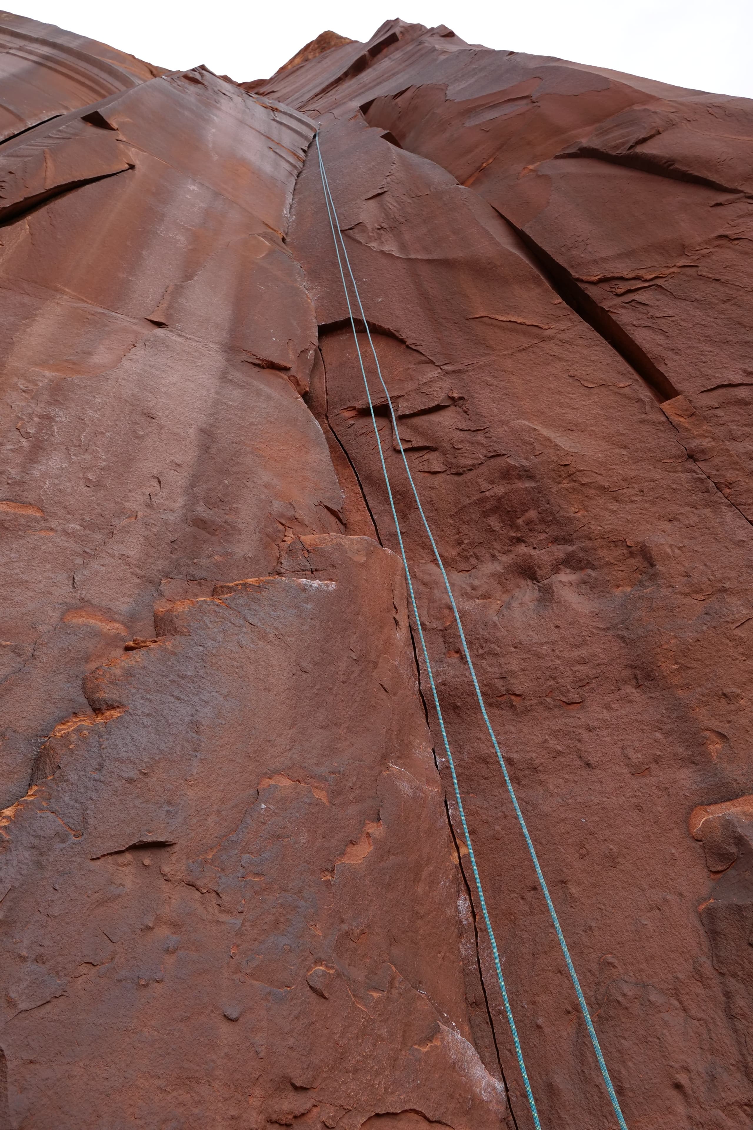左隣のBattle of the Bulgeとは地続きとなってますが、ここINDIAN CREEKはルート基部での水平移動が大変なので、一度下まで降りて登りなおした方が早いかもしれません。