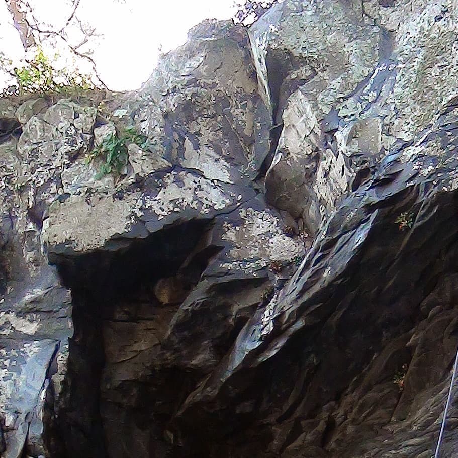 つり橋を渡り、遊歩道を降りていくと遠くに見えます。観光客からは丸見えなので心してかかりたい。ルート数は少ないがハードなものばかりです。