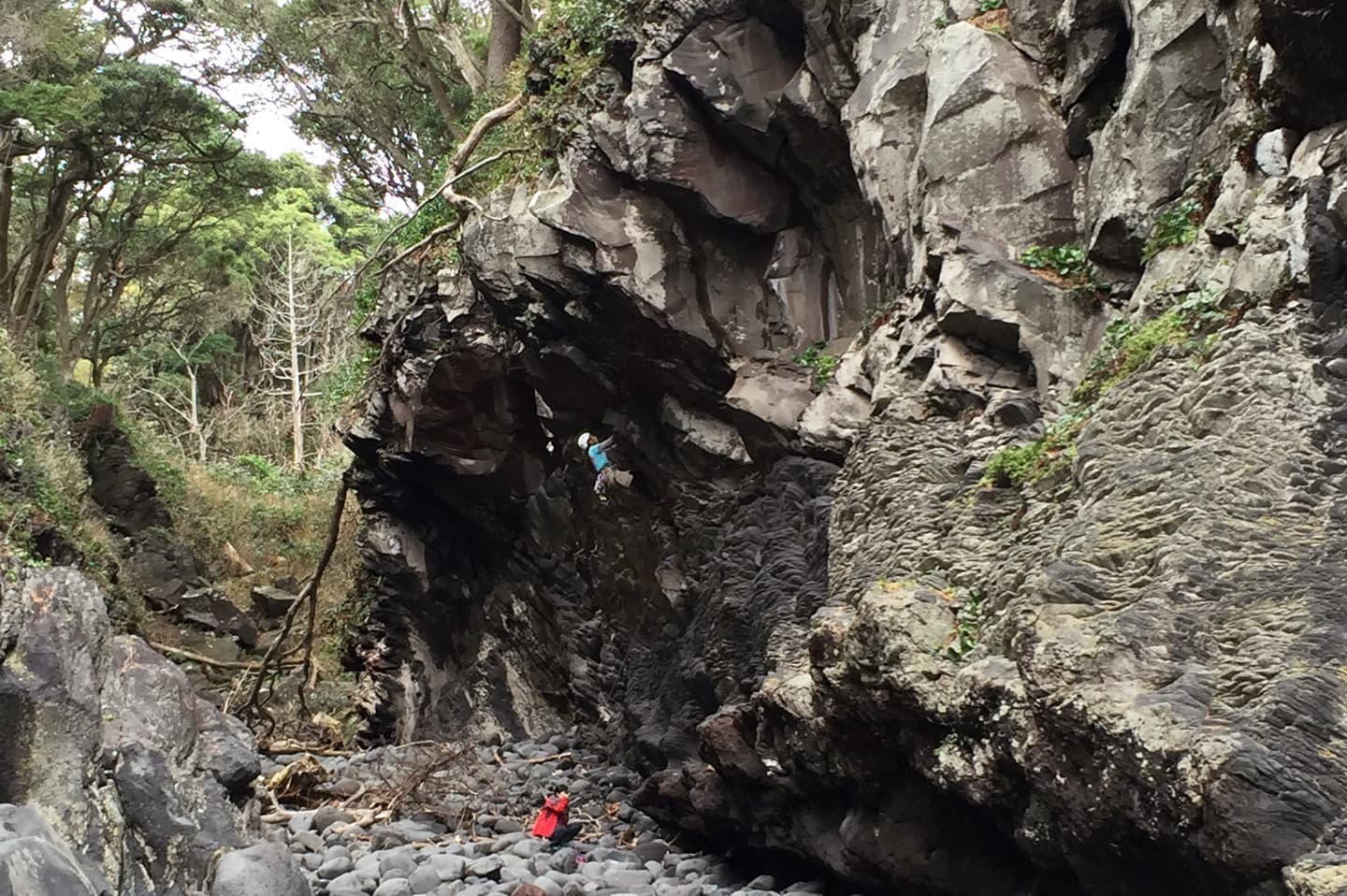 城ヶ崎には珍しくワイドクラックが数本揃ってます。エリアは5.10未満のルートがほとんどで初心者の練習にも良い環境です。ただし終了点作成は大変です。