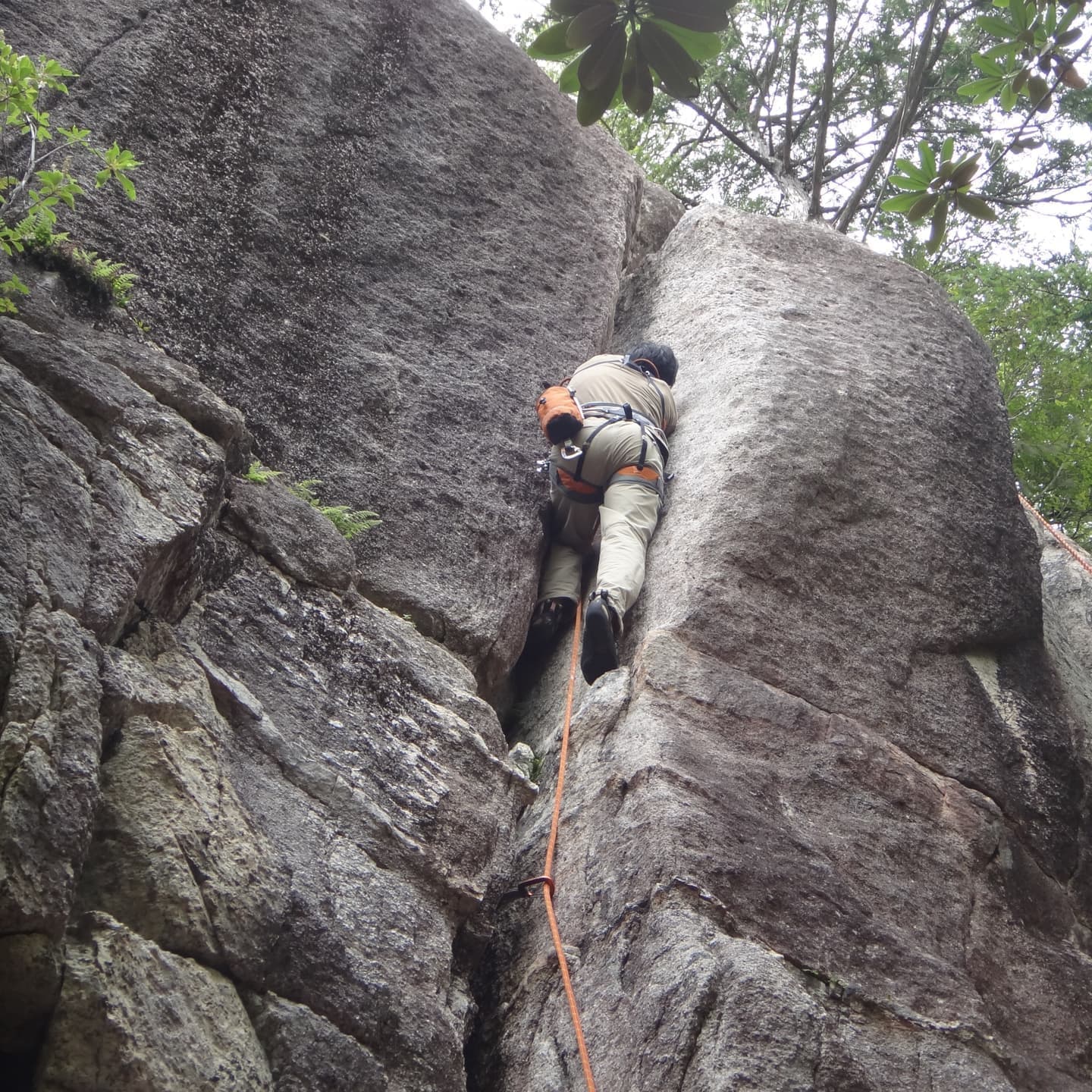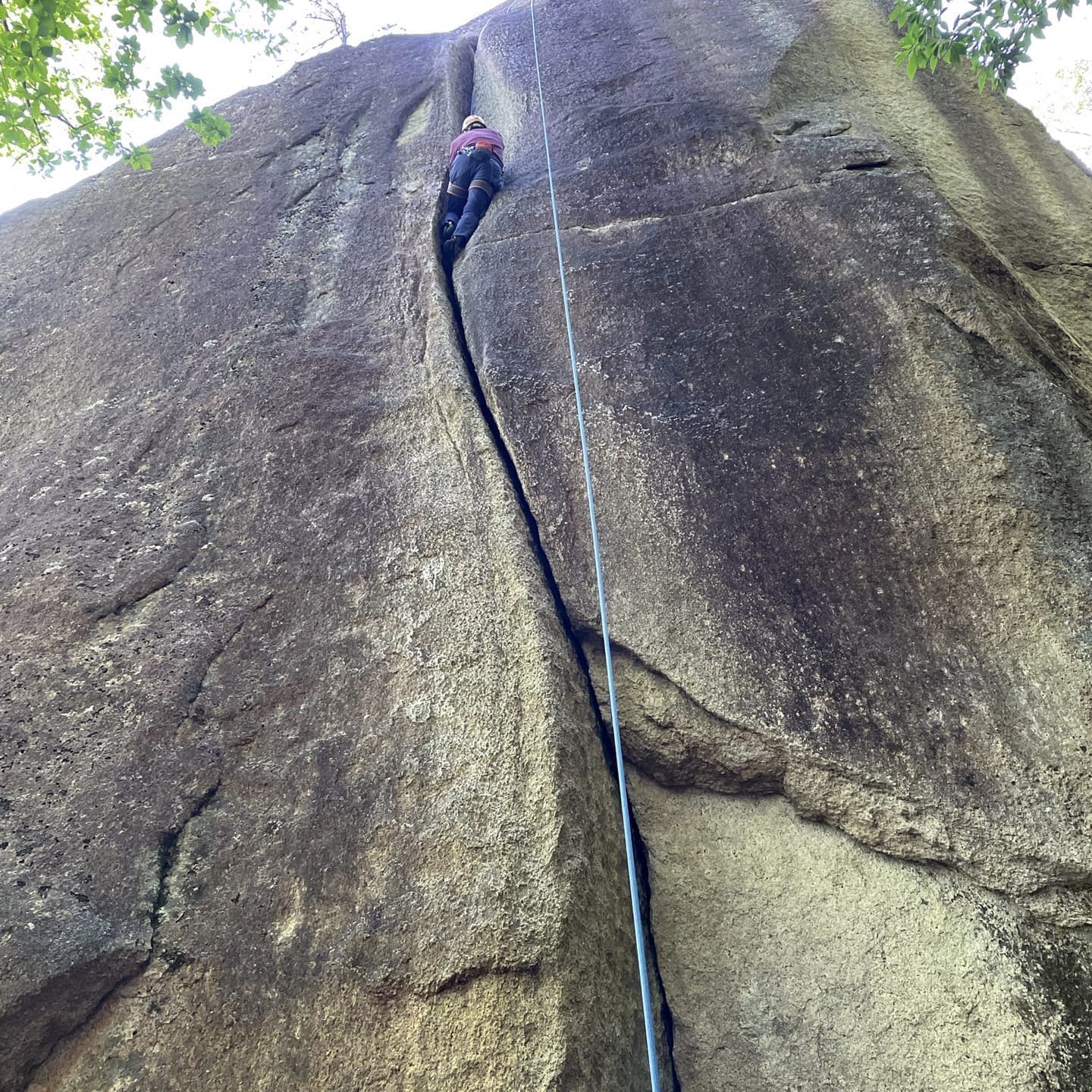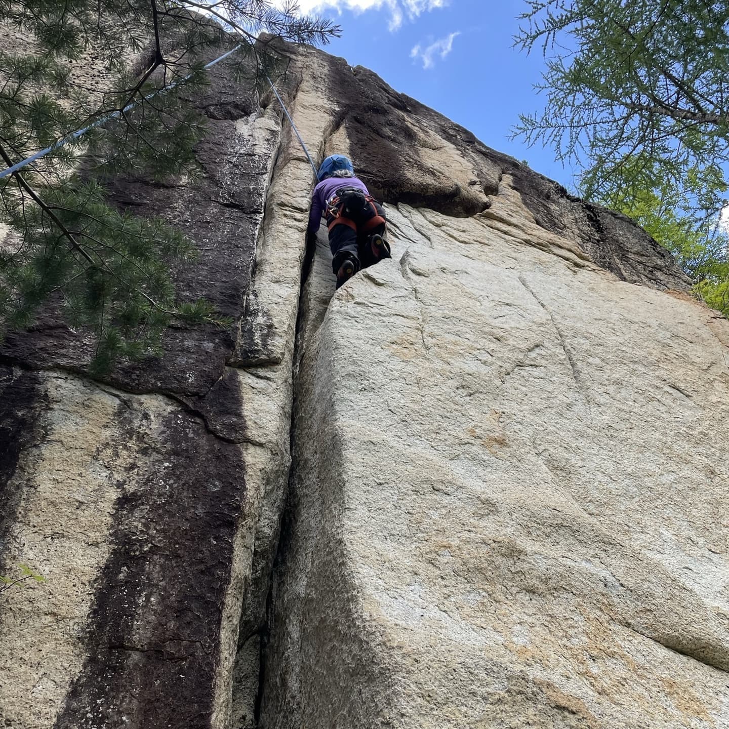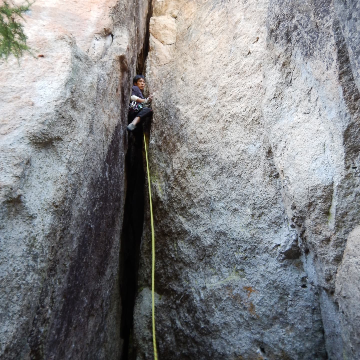 ワイドクラック。ワイド慣れしていないと難しく感じる。核心はどちら向きで行くかで。。。何度登っても気持ちよく、眺めも最高!