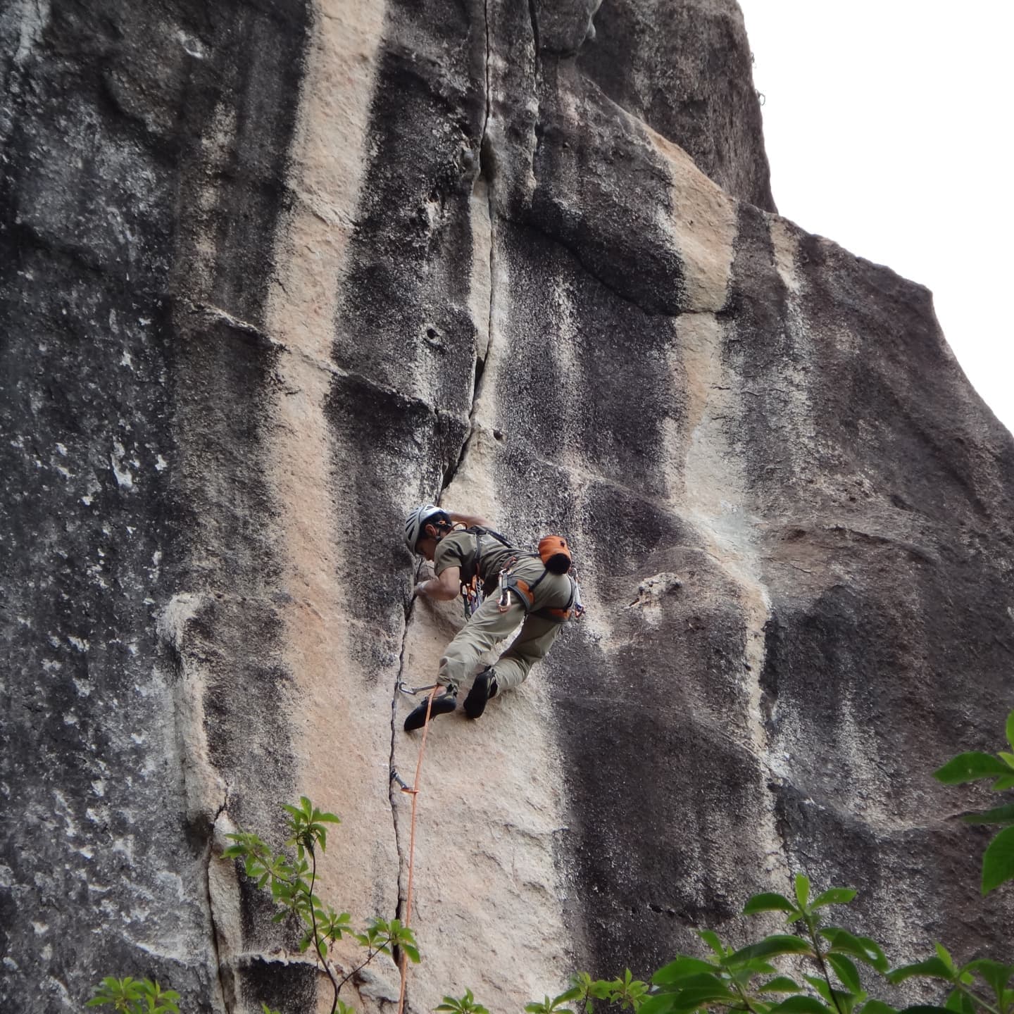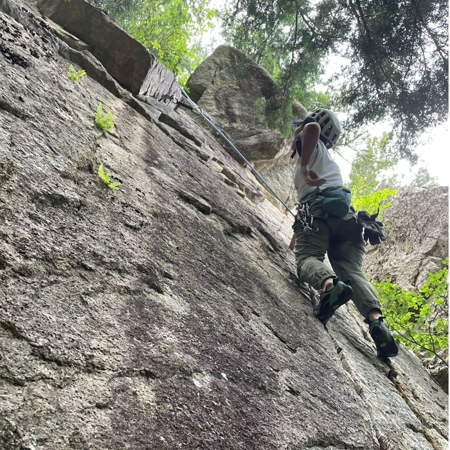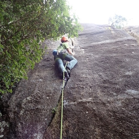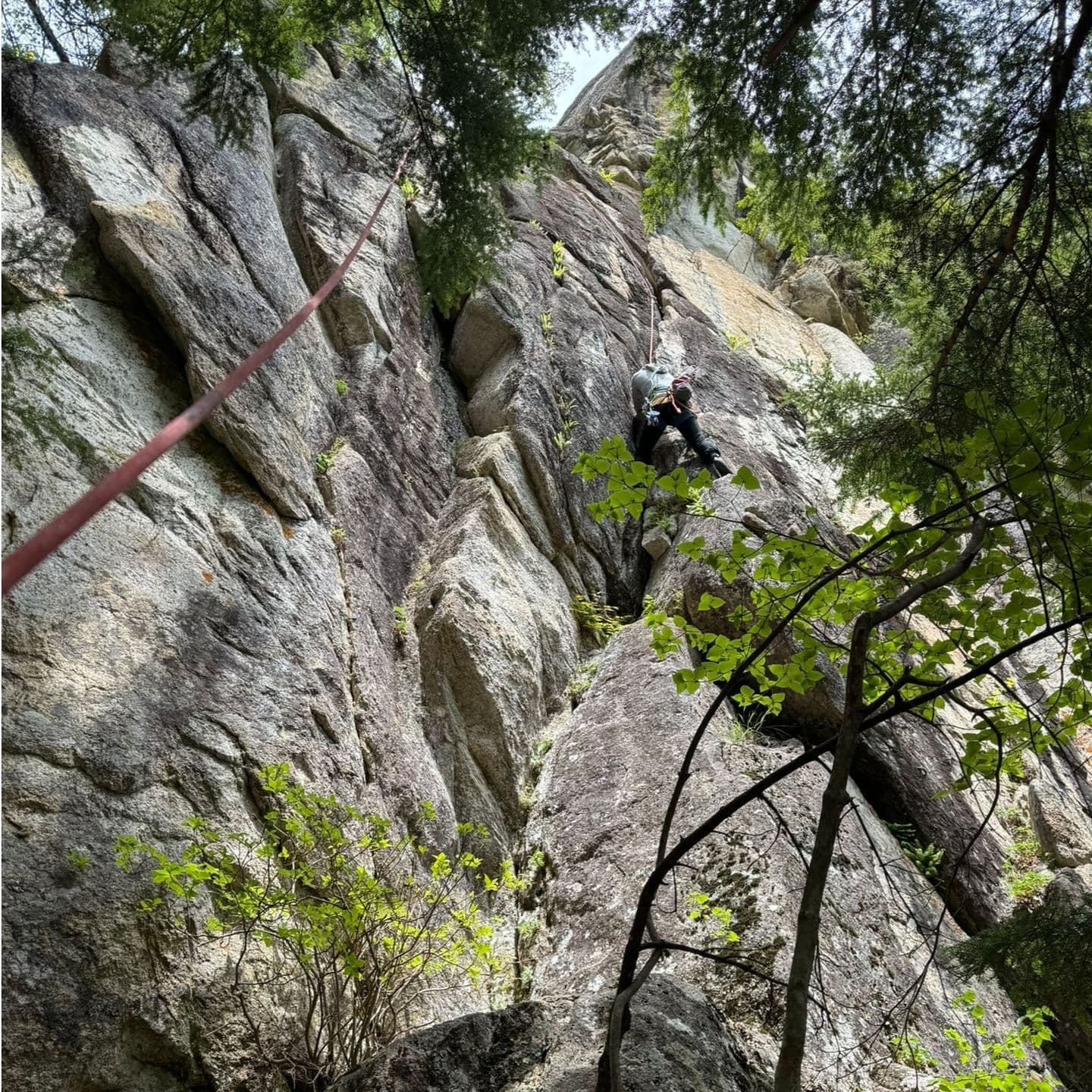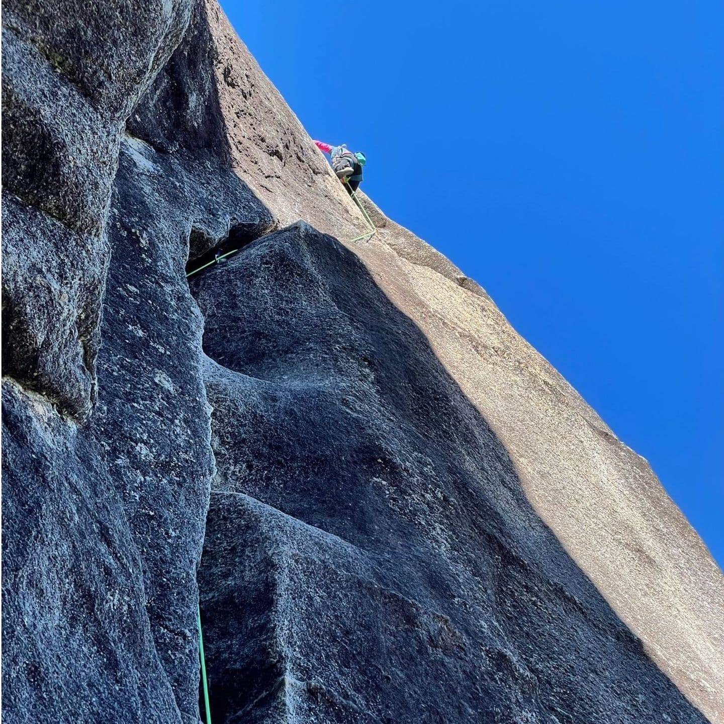 とても迫力のあるルートで、基部に立つと威圧感満載。長く持久力の必要なルート。ワイド部分は5.8程度だがワイド慣れしていないとここで跳ね返される。