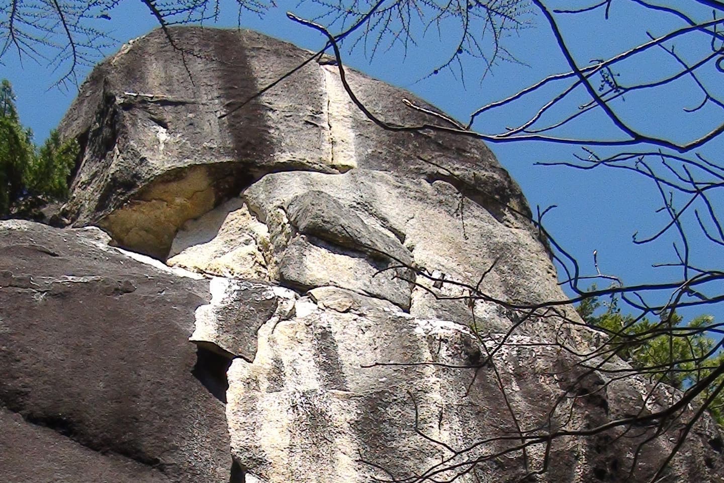 最高ルーフ周辺の岩は、お殿様岩から右トラバースするとへ行くと見えてくる。