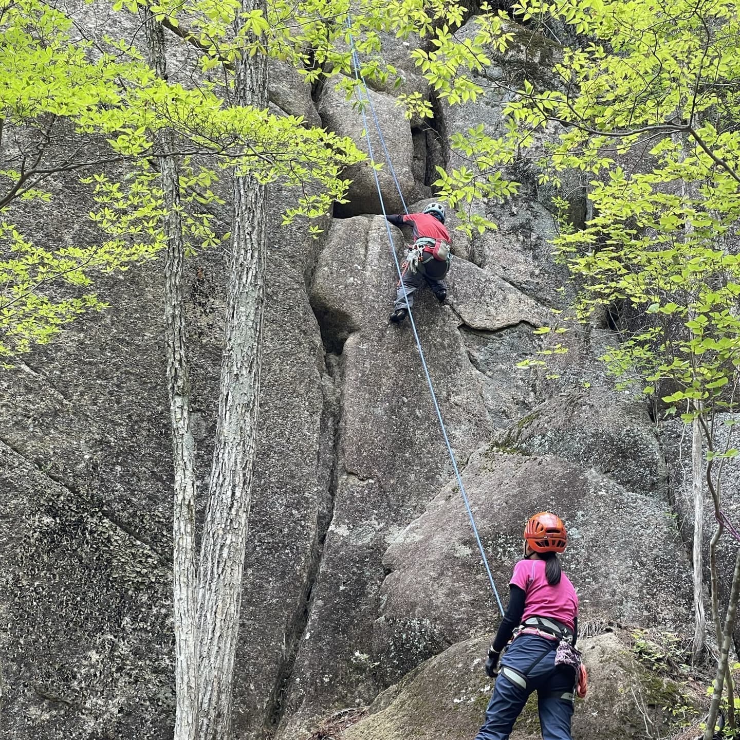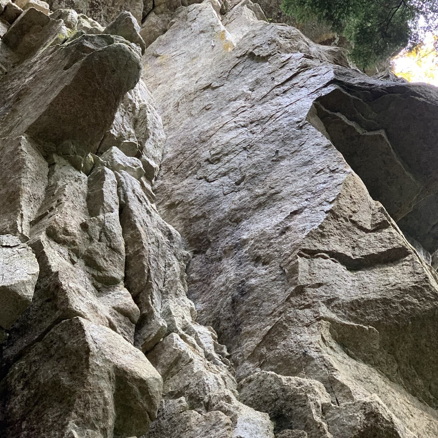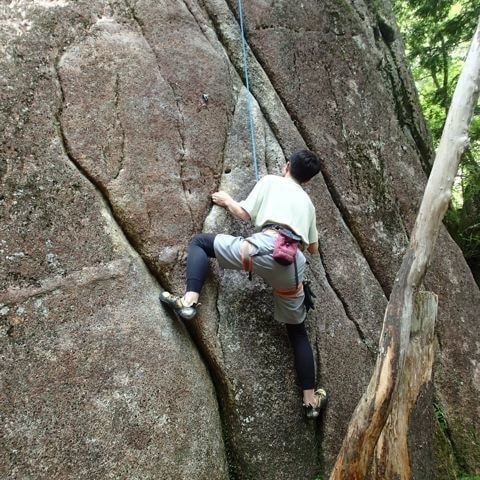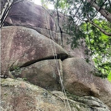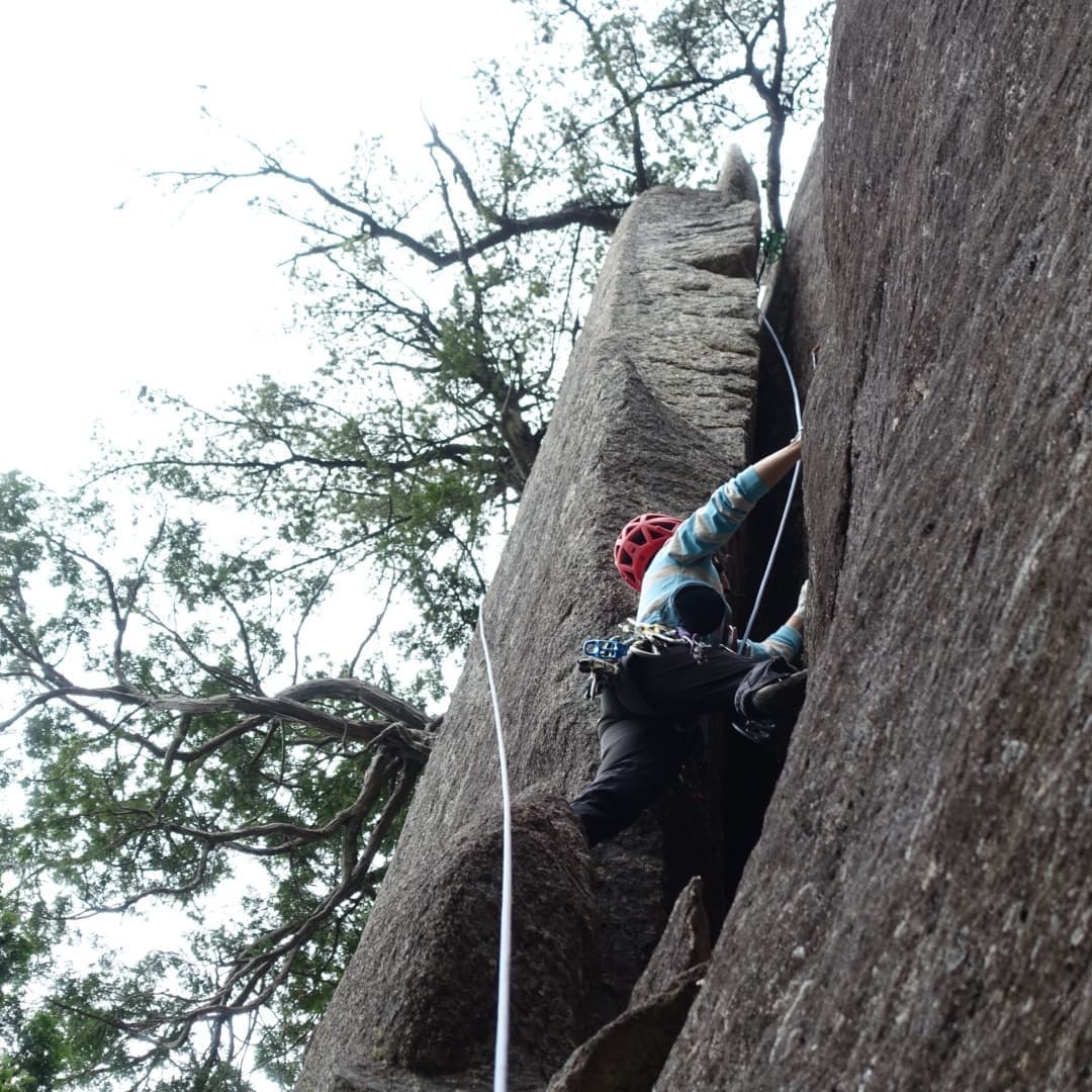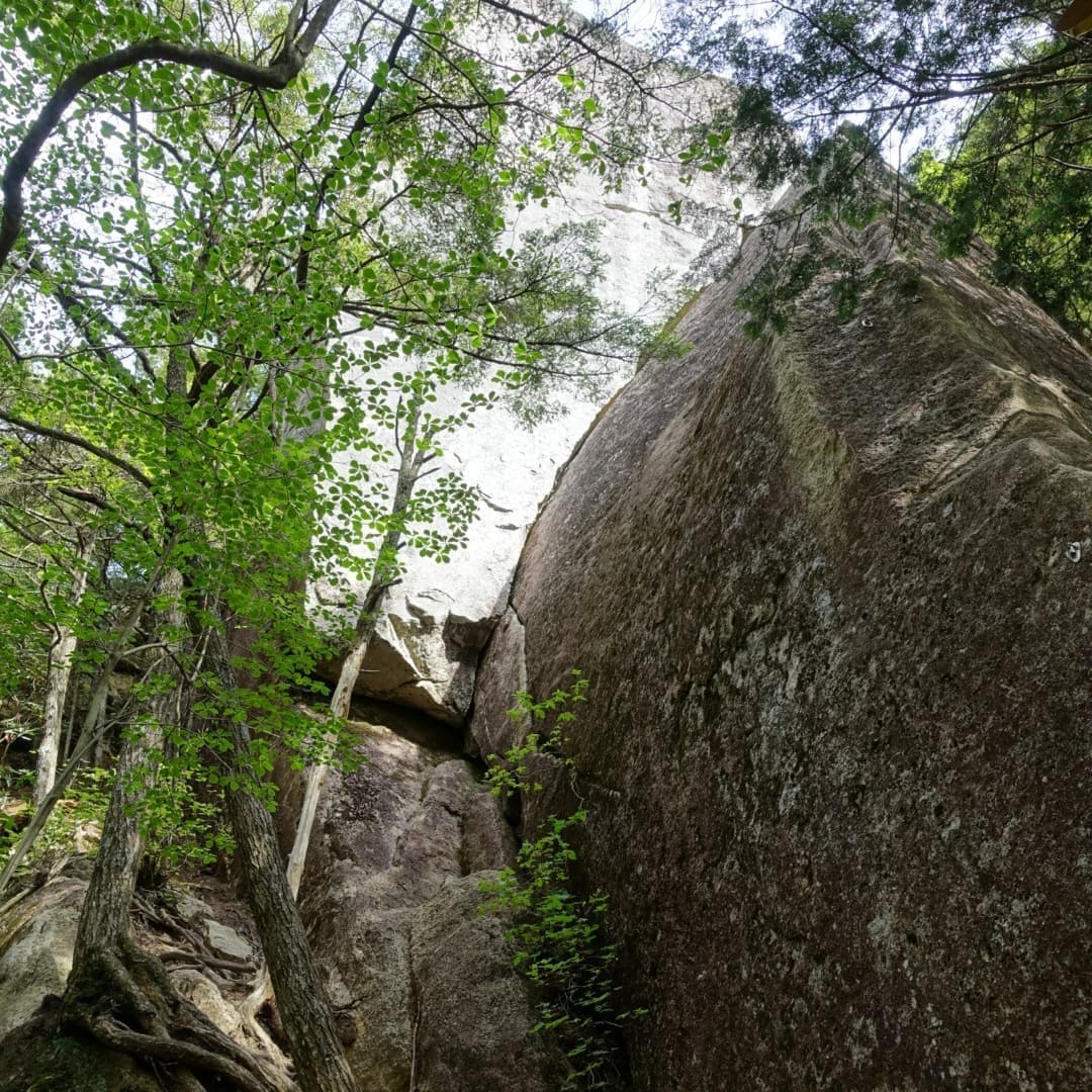 岩質は花崗岩、同じ花崗岩でも小川山に比べルートスケールが大きいです(ロープは60m以上あった方が安心)