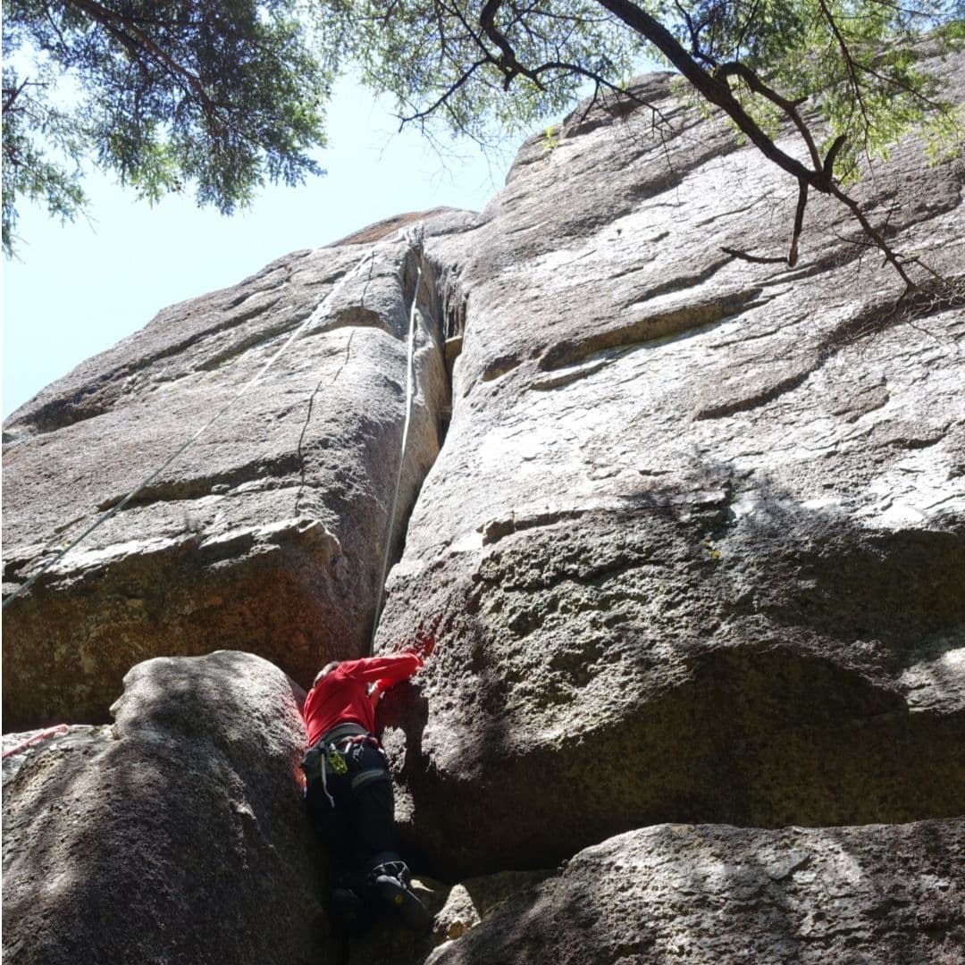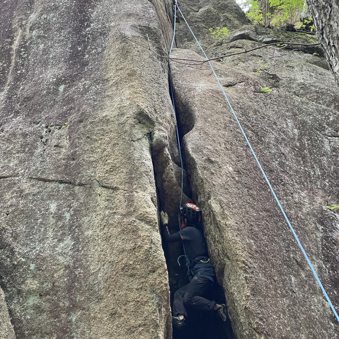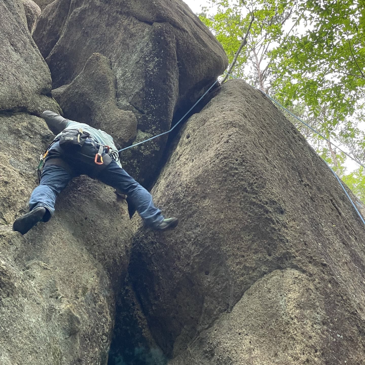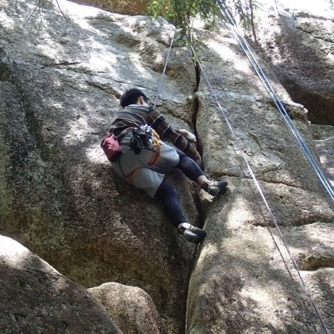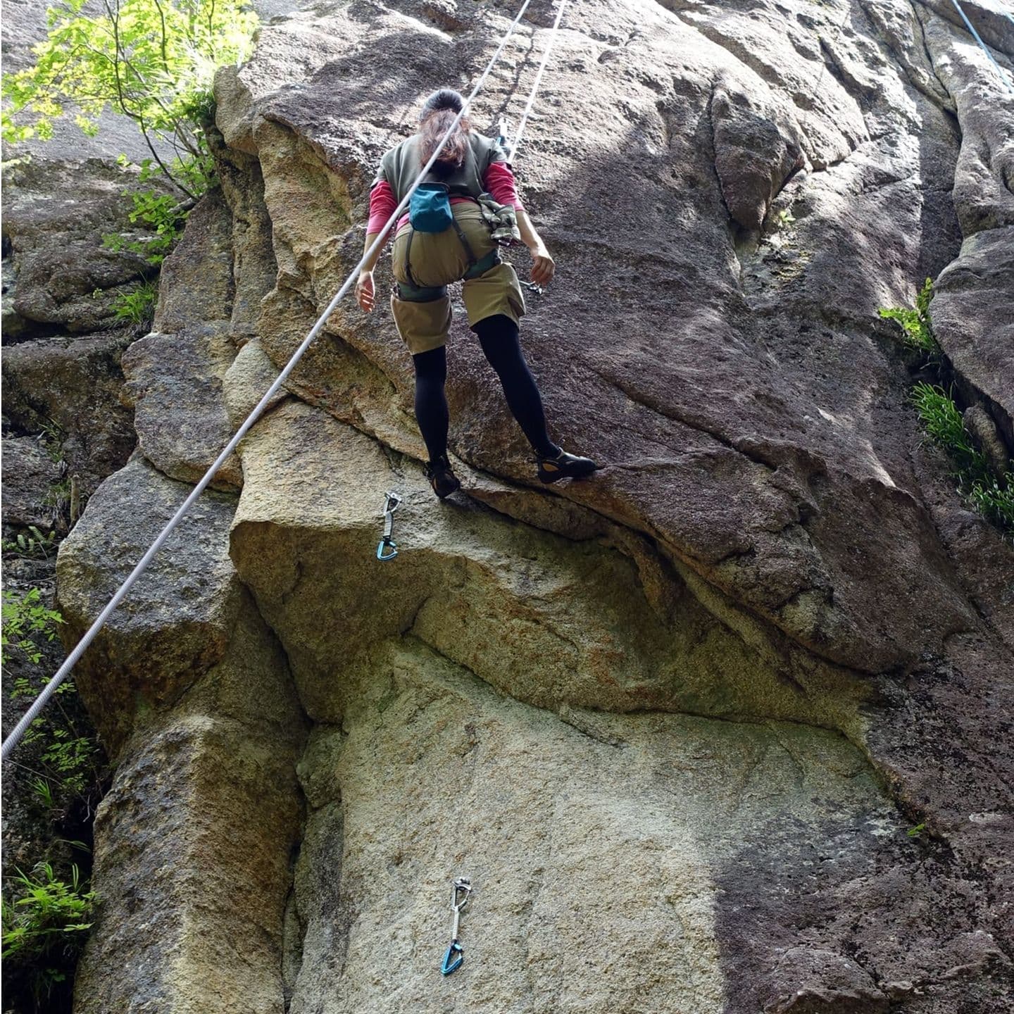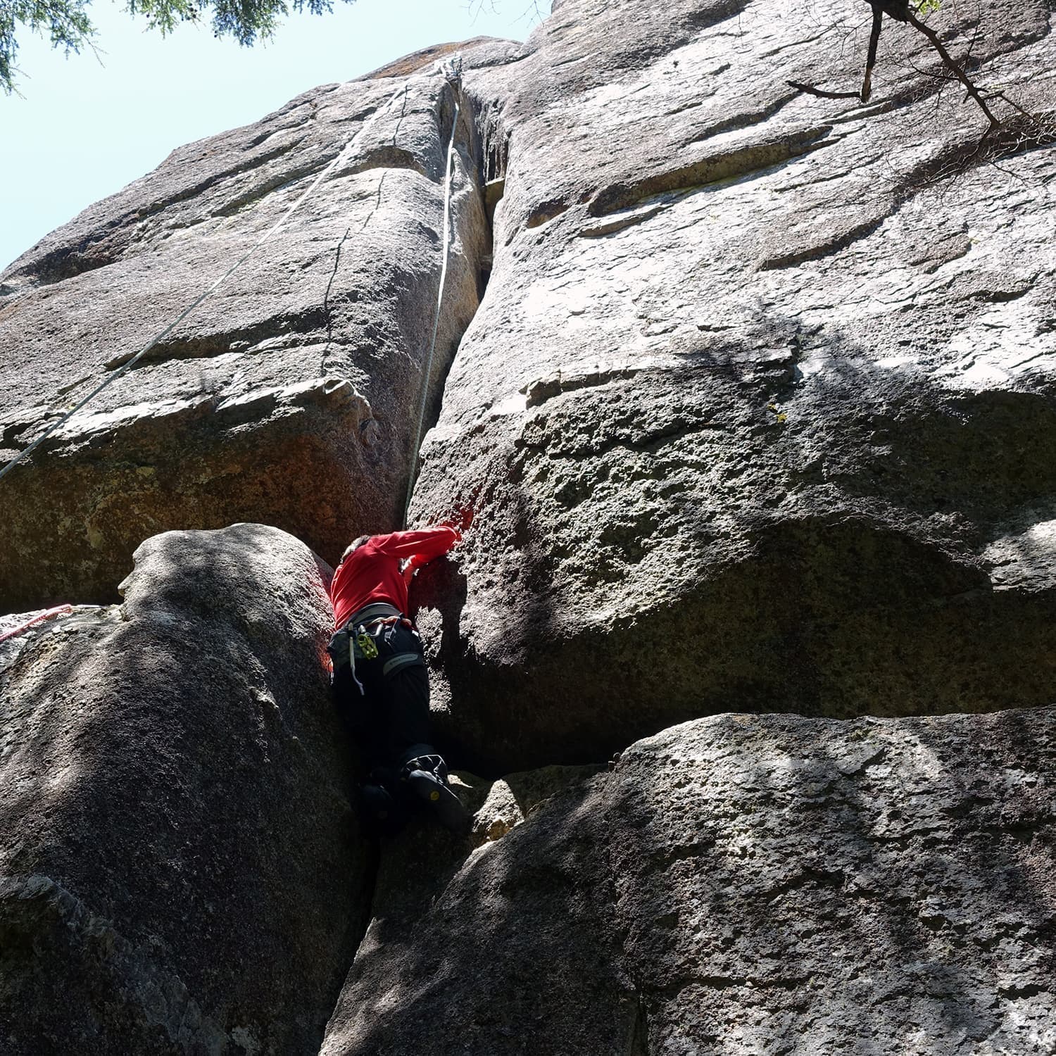 岩質は花崗岩、同じ花崗岩でも小川山に比べルートスケールが大きいです(ロープは60m以上あった方が安心)