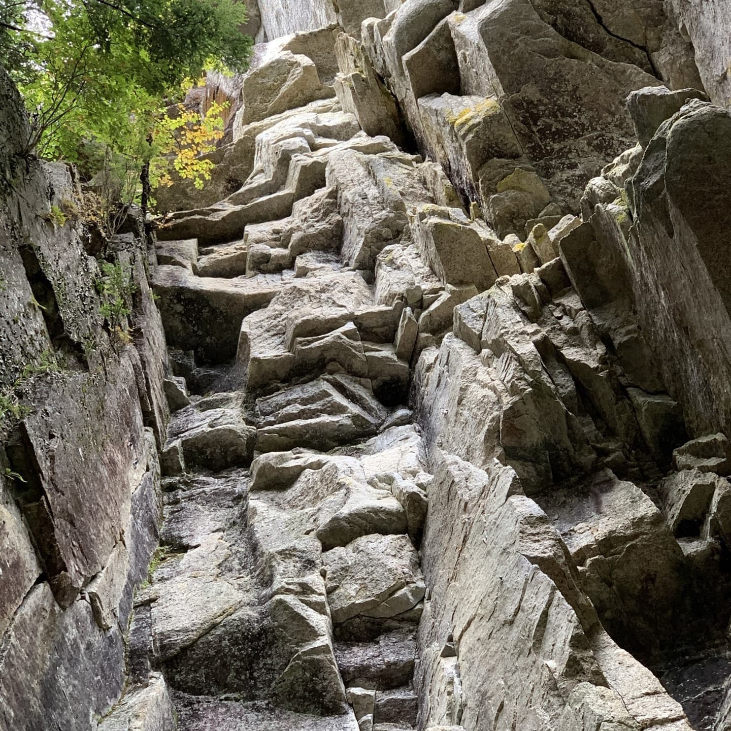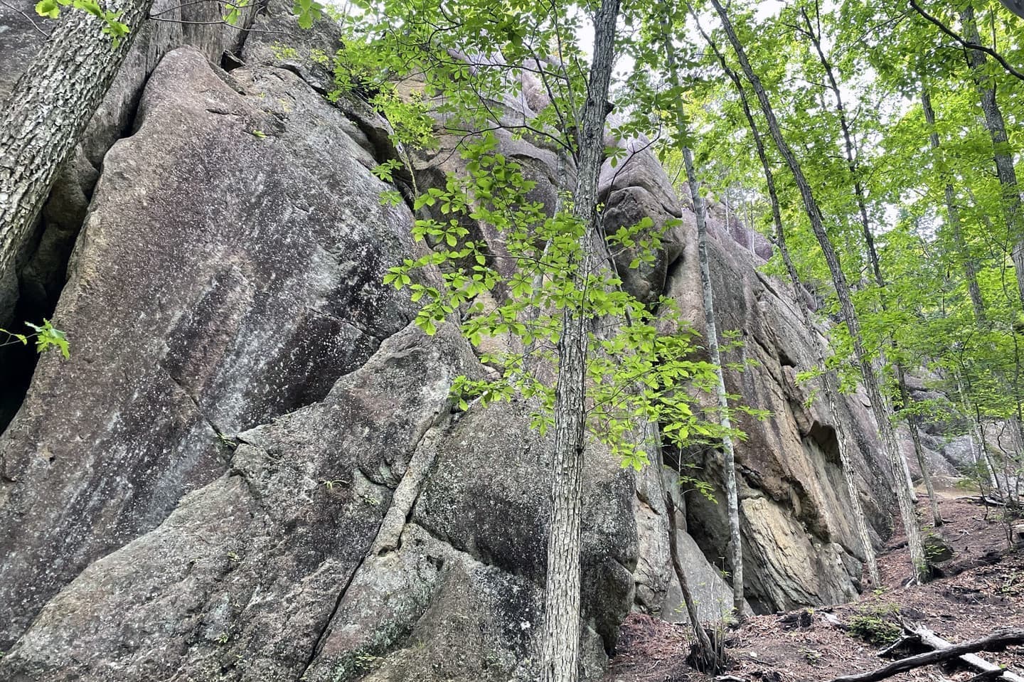 壁の周り一面にクラックやフェイスルートがあり各ルートのクオリティが高い。登山道のすぐわきにあるので見物客も多いです。