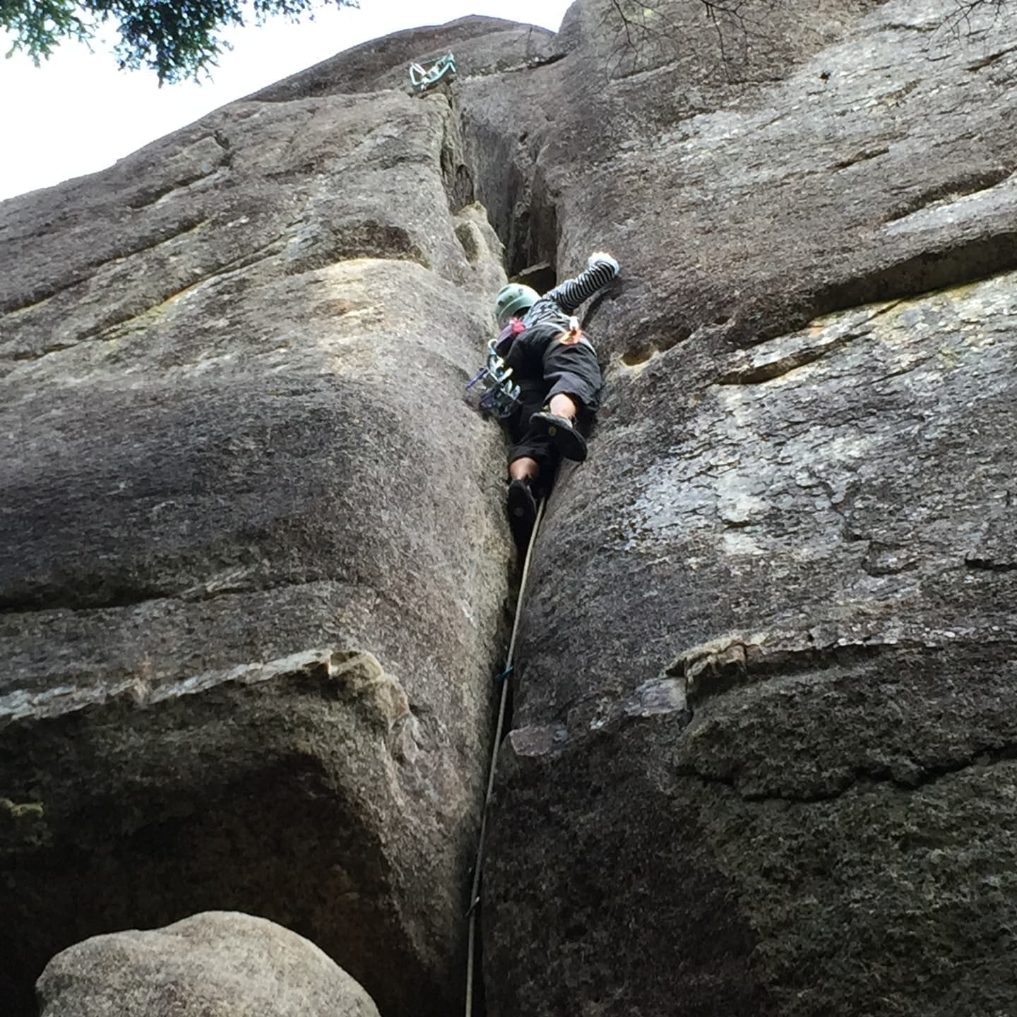熊岩はエリアは小さいが、ハンド・フィンガー・ワイドと一通りのジャミングを練習できる。ワイドはスパイスの利いた好ルートです。